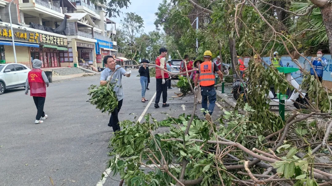 8月25日,市纪委监委机关党员干部在天涯区三亚湾社区开展台风后清障工作。