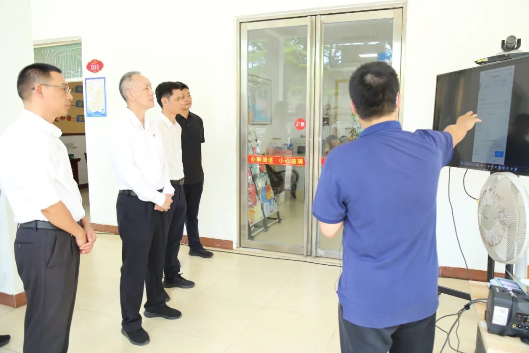 刘刚到崖州区水南村调研“机器管公章”建设情况。