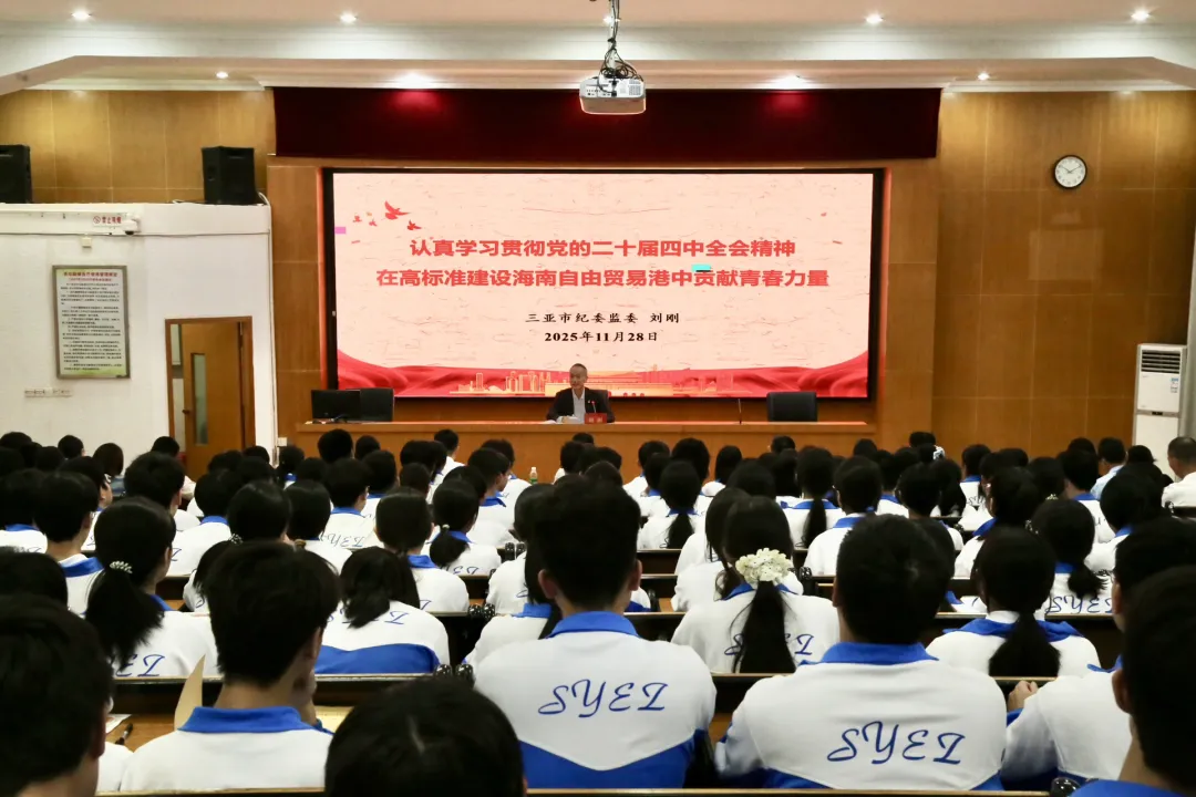 11月28日,市委常委、市纪委书记、市监委主任刘刚以“认真学习贯彻党的二十届四中全会精神 在高标准建设海南自由贸易港中贡献青春力量”为题,在三亚市第二中学宣讲党的二十届四中全会精神并讲授思政课。